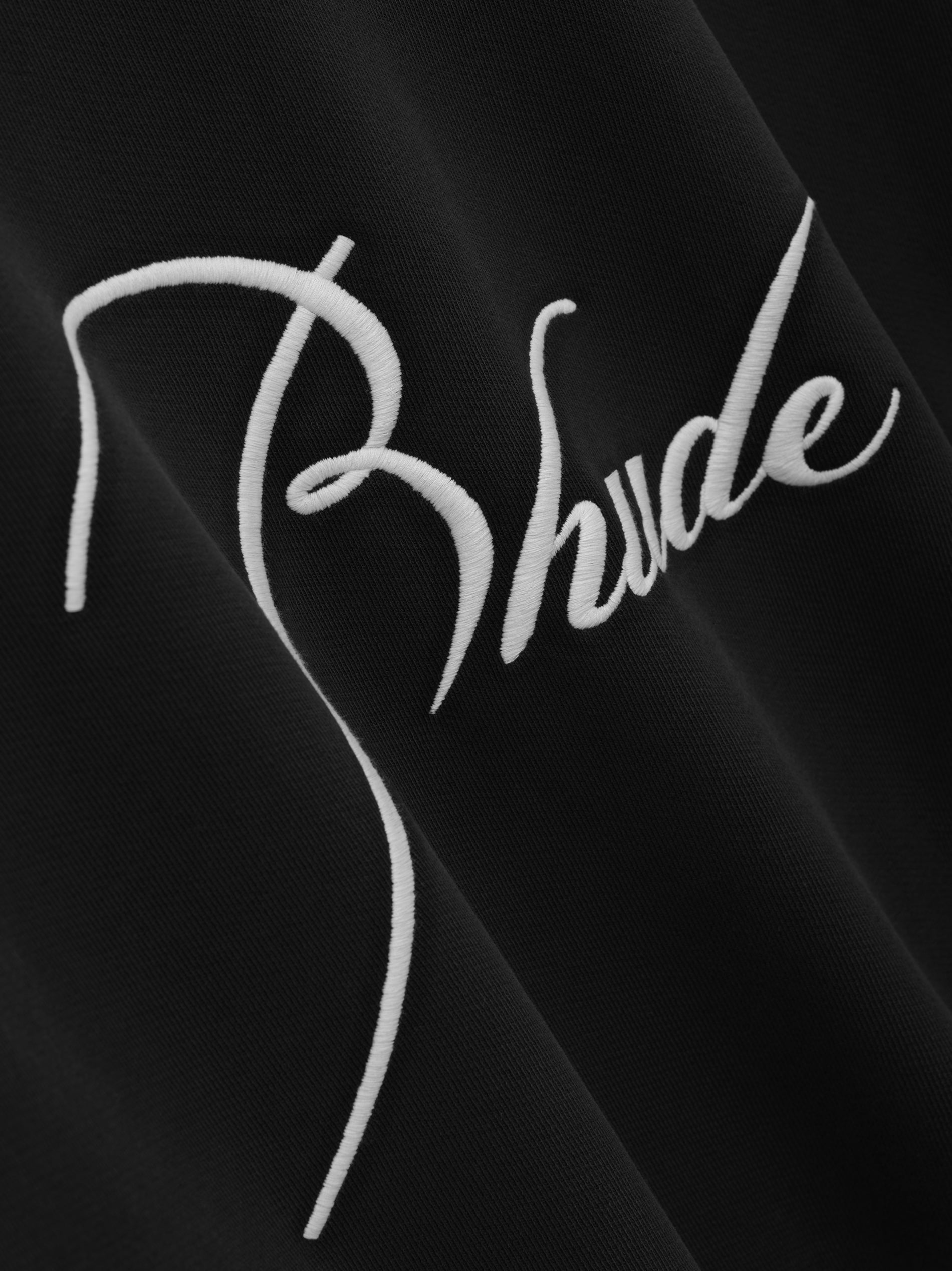 Long sleeve French Terry Crewneck with Rhude signature script logo embroidered on the front and back. Featuring a kangaroo front pocket and dropped shoulders.