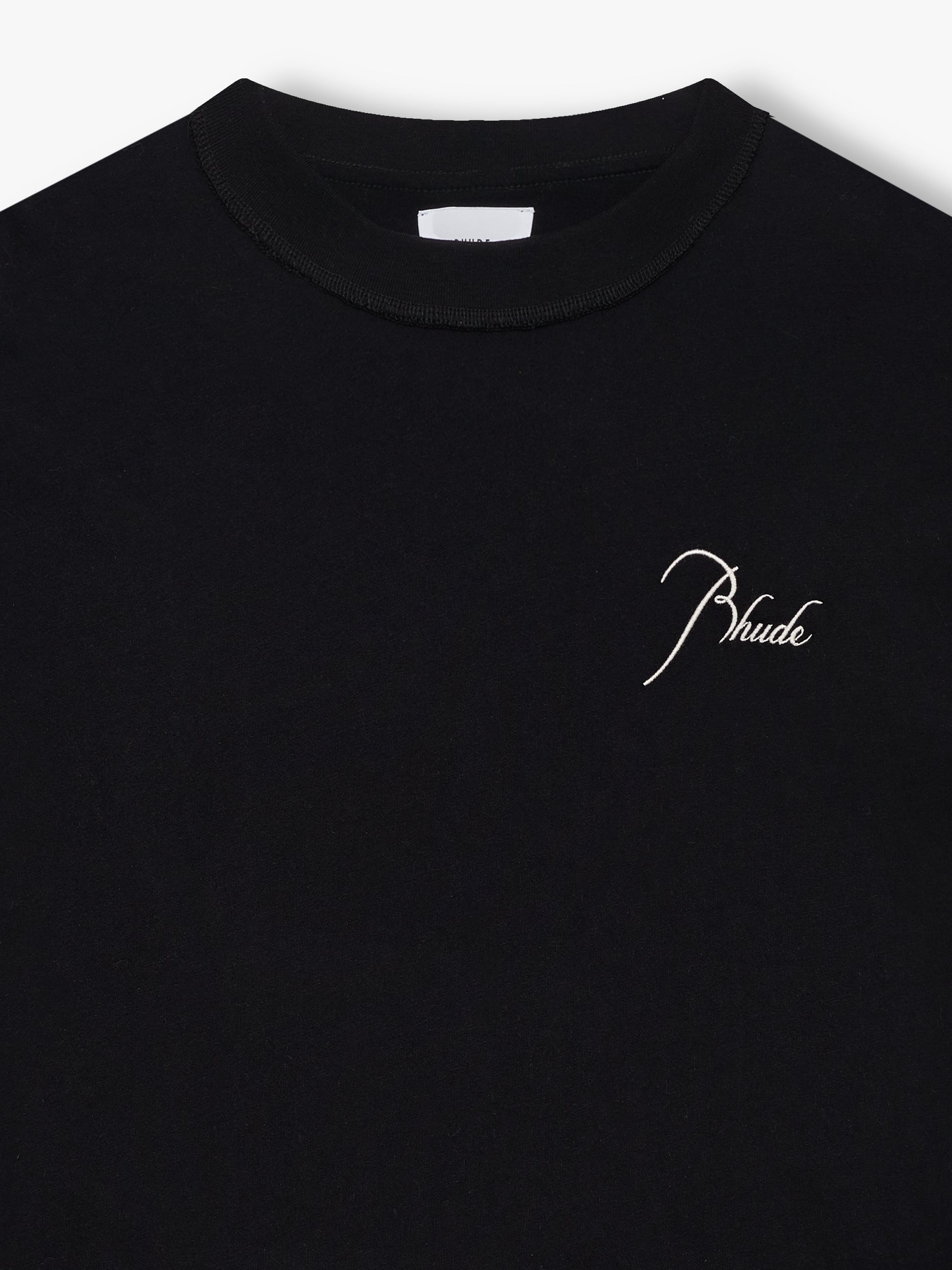 This custom fit shirt replicates the perfect 90's t-shirt using our premium materials and construction. Features cut off sleeves, with signature Rhude script logo embroidered on the front.