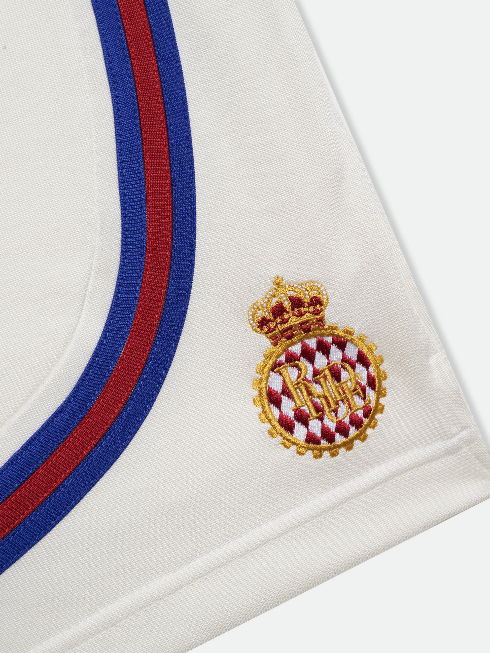 Premium track shorts featuring Rhude crest embroidered on front leg, an elasticated waistband, twin side pockets, and exaggerated front drawstrings in our signature Mustard tone.