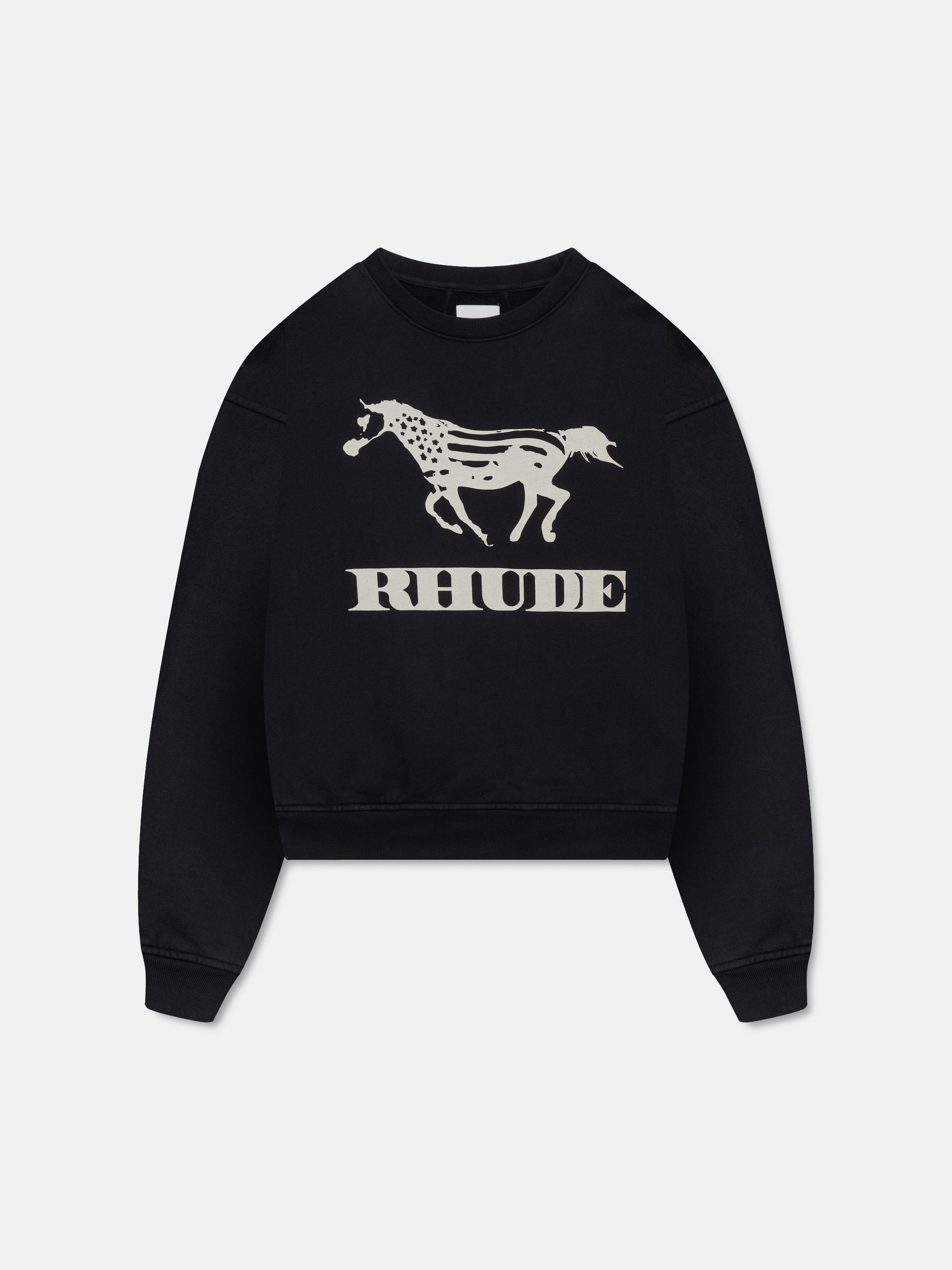 This long-sleeve cotton crewneck showcases Rhude "Dinero" designs on front, with a clean back. It features a comfortable pull over styling, and dropped shoulders for a relaxed, effortless fit.