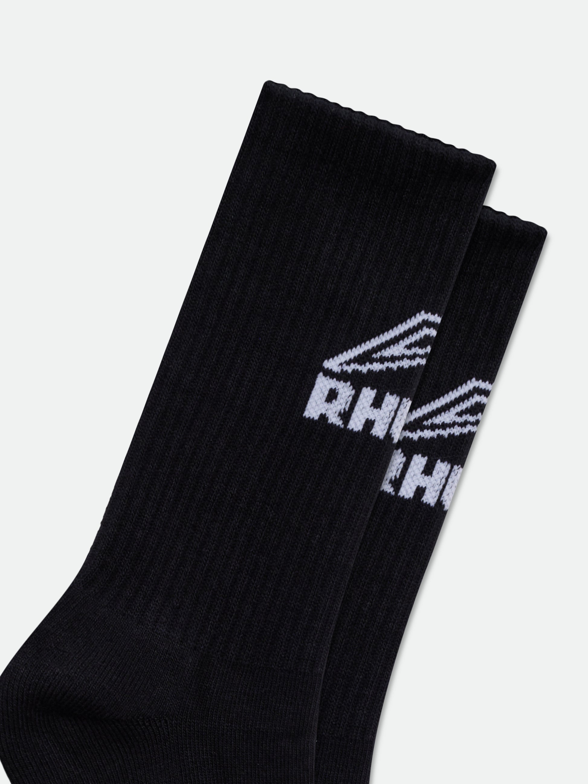 Signature cotton-poly sport sock with Rhude footy logo. Designed for athletics and leisure activities.