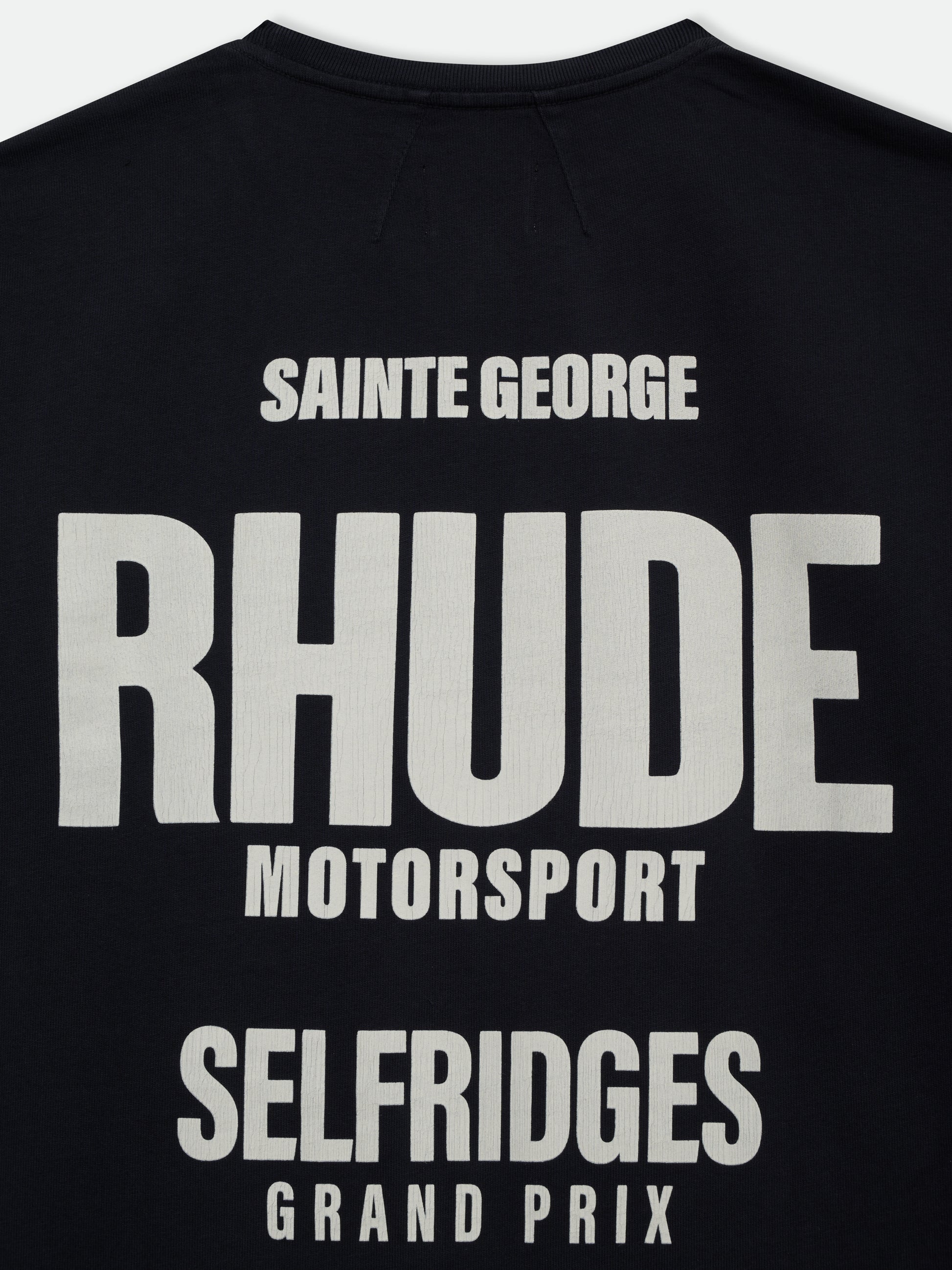 Custom-fit vintage wash cotton short sleeve tee-shirt with Rhude "Grand Prix " graphics printed at front and on back.