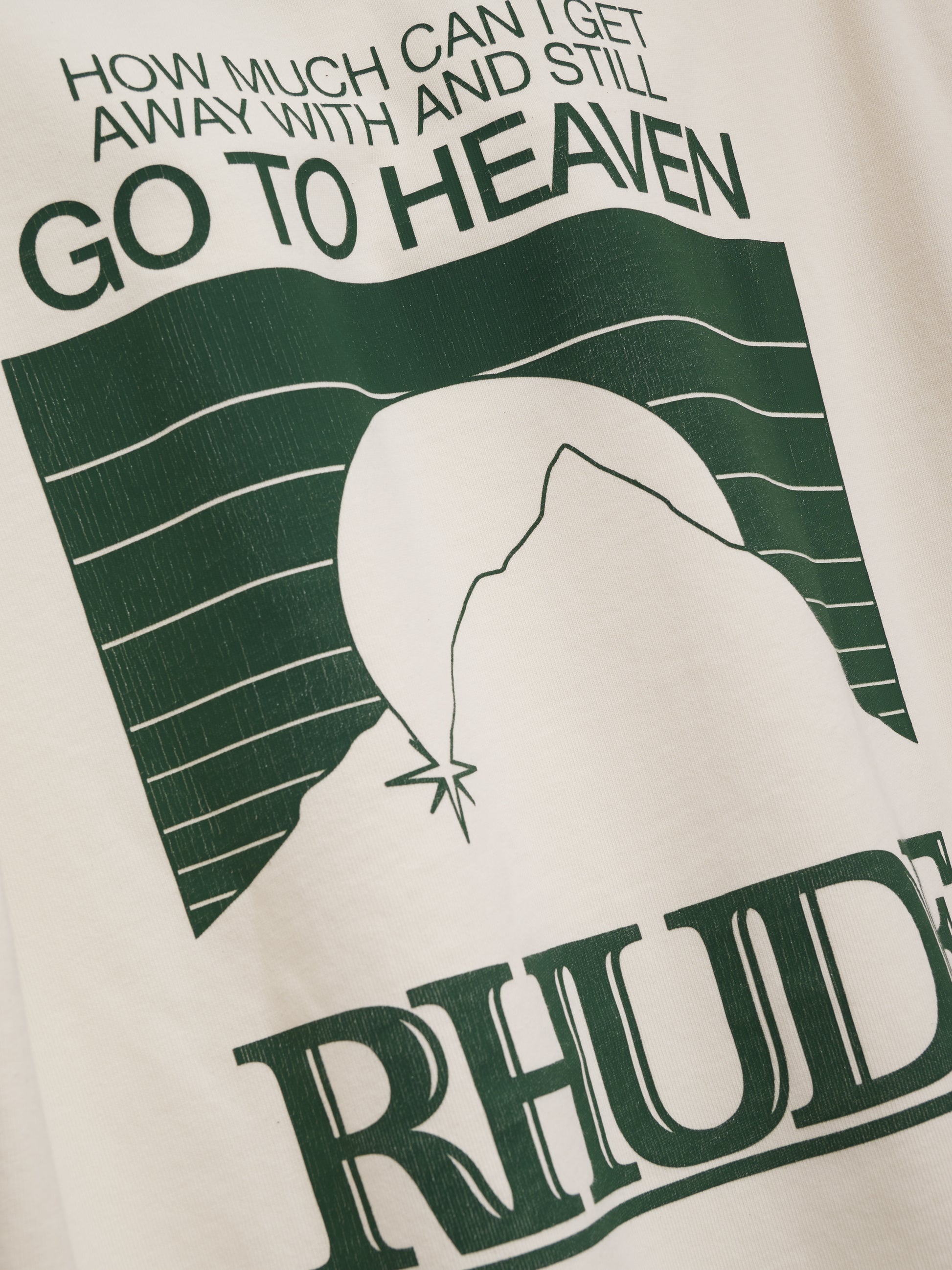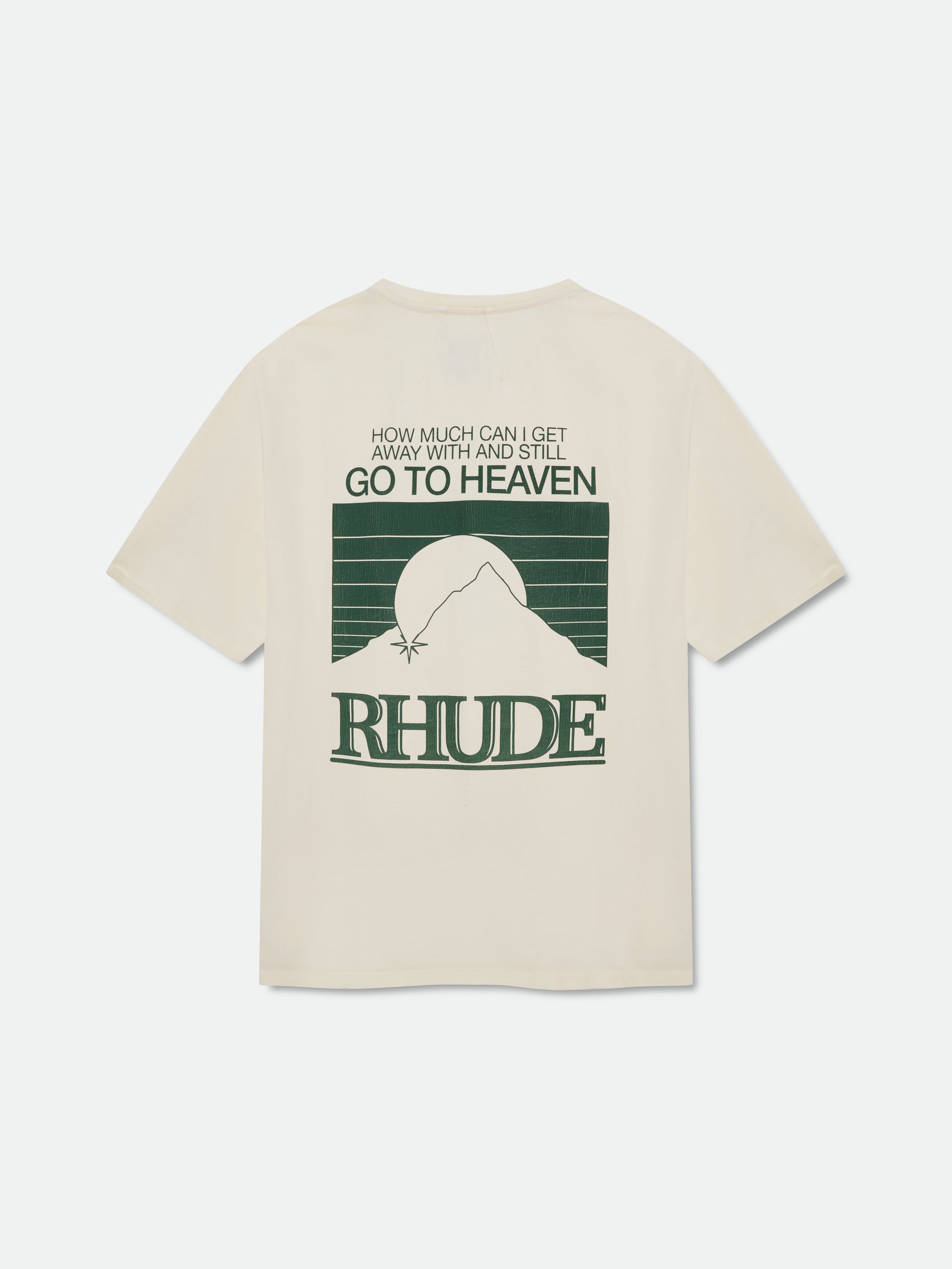 Custom-fit vintage wash cotton short sleeve tee-shirt with Rhude "Moonlight Pack " graphics printed at front chest and on back.