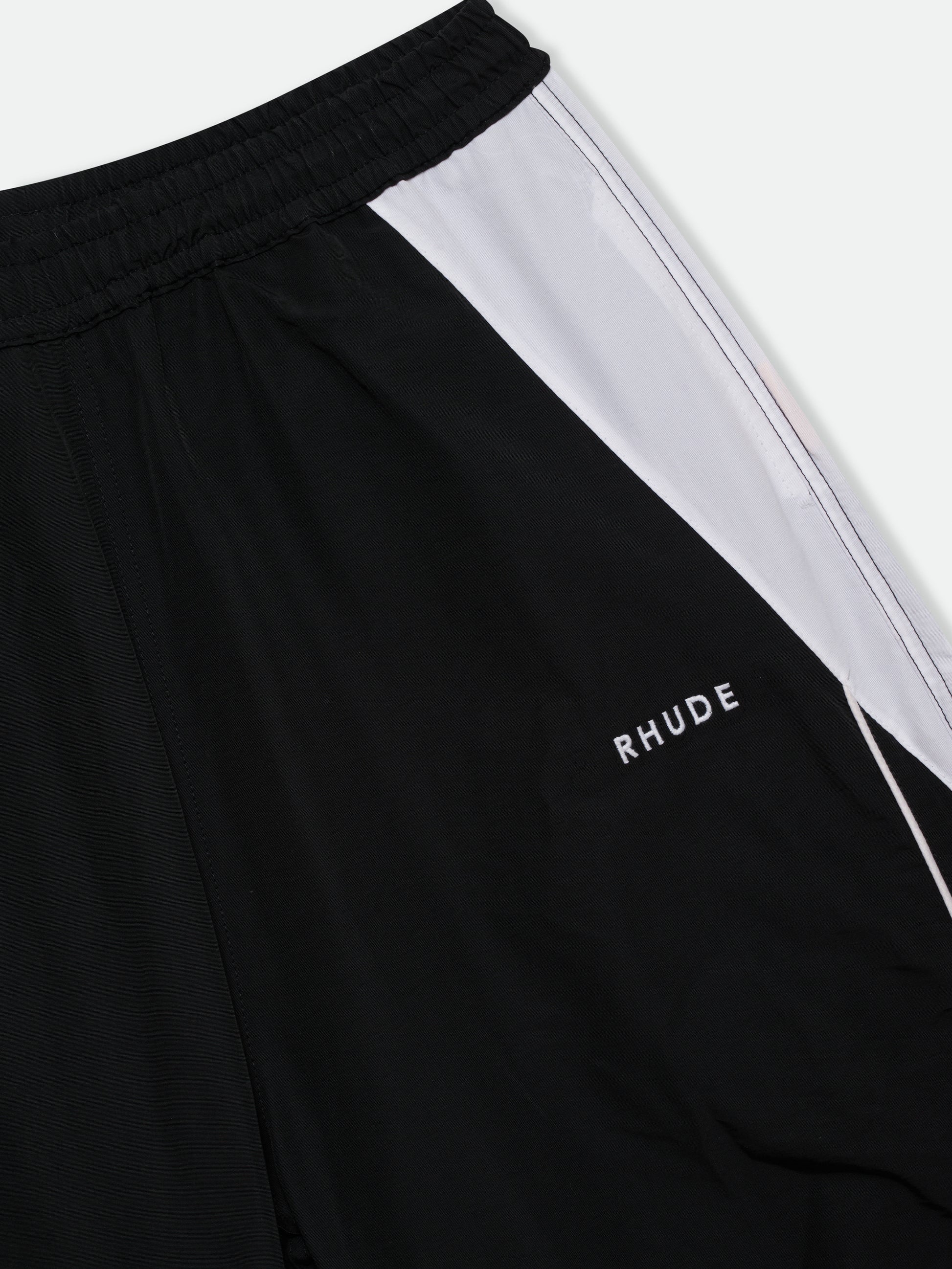 Our classic track pant features Rhude classic logo on front, with diagonal white stripes contrast the sides, and a cropped hem.